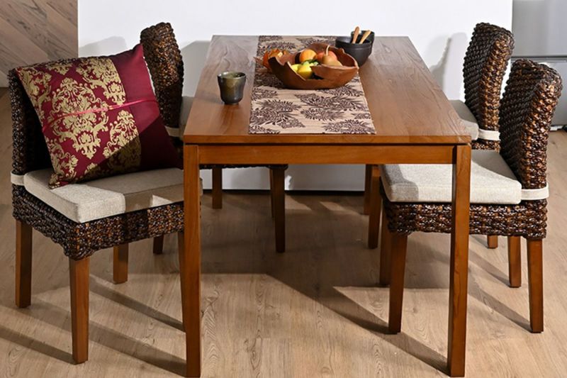 世界三大銘木の一つに数えられるチーク材は、言わずと知れた高級木材。 木目が非常に美しく、堅く頑丈な材質で耐久性に優れたチーク材は近年希少性が高まりつつあります。 こちらのダイニングテーブルはそんなチーク材を贅沢に使用して作られました。 使うほど味わい深くなるロングライフなダイニングテーブルでお部屋作りをお楽しみください。
