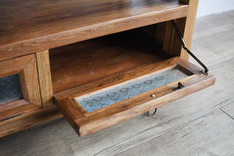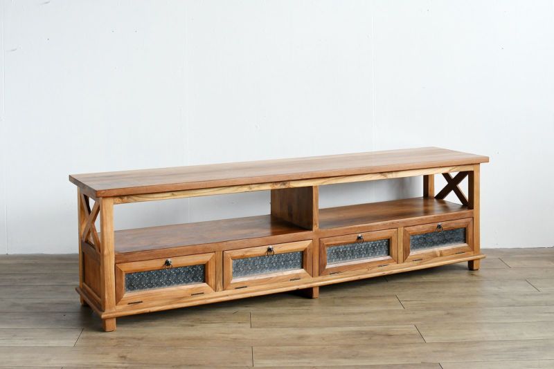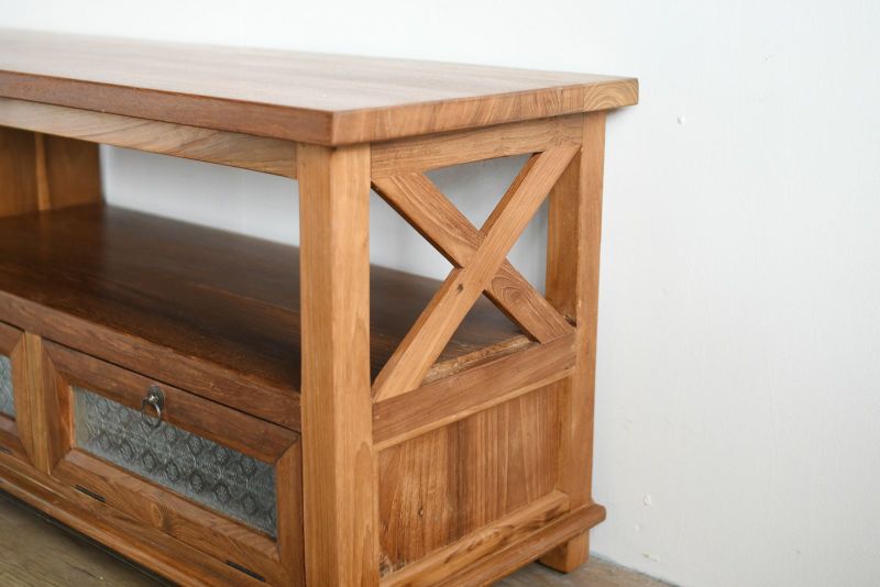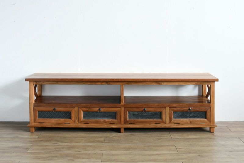 チーク古材とジャワの型押しガラスの組み合せが人気のTVボード